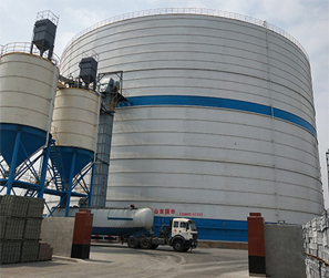 大型钢板库,是一种突破传统建库理念新型技术,适应于各种不同地质气象条件建造,大型钢板库具有储量大、建造周期短,吨储投资省、占地面积小、输送方式简单、粉尘排放点少和自均化的特点。
